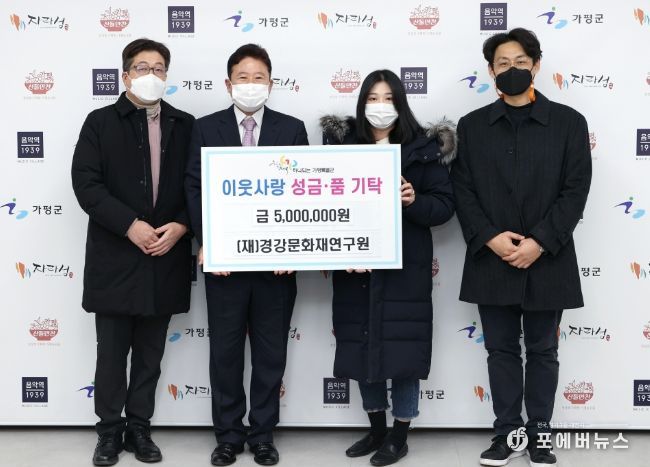[ 포에버뉴스 김경순 기자 ] 12월 20일, (재)경강문화재연구원에서는 연말을 맞아 소외되고 어려운 이웃을 위해 이웃돕기 성금 500만원을 군에 기탁하여 전달식을 가졌다.