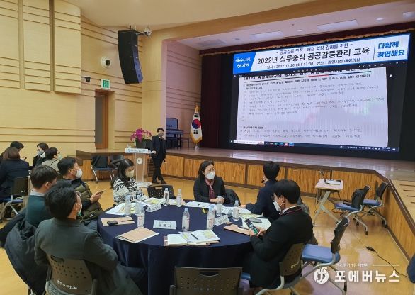 [ 포에버뉴스 김경순 기자 ] 광명시는 지난 20일 시청 대회의실에서 시 직원과 서울 중구·마포구, 경기 화성시 등에서 참석한 갈등조정관, 공무원 등 40여 명을 대상으로 ‘2022년 실무중심 공공갈등관리 역량 강화 교육’을 실시했다.