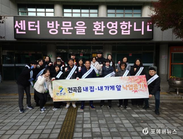 [ 포에버뉴스 김경순 기자 ] 연천군 전곡읍행정복지센터는 17일 행정복지센터 일대에서 도로변 및 인도에 떨어진 낙엽줍기 활동을 펼쳤다.