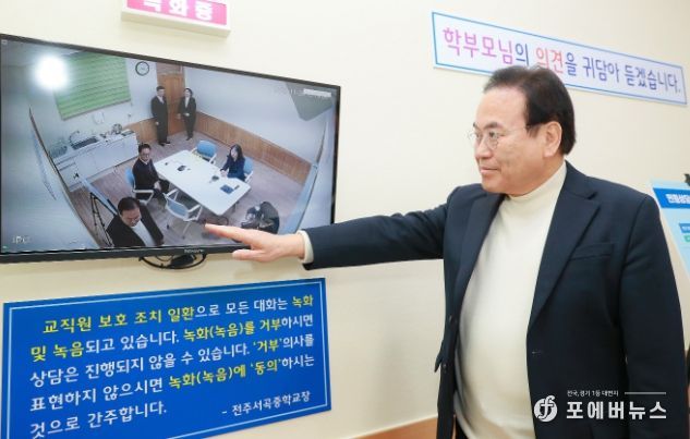 교권 회복을 역점사업으로 추진해온 서 교육감은 전주서곡중과 전주은화학교 민원상담실 구축 현장을 방문해 민원상담실 운영 방법 및 교육활동 보호를 위한 교직원 의견을 청취하며 현안 해결에 앞장섰다.