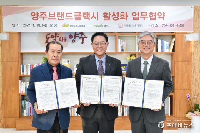 이날 강 시장과 양재화 위원장, 김태극 이사장은 업무 협약서에 각각 서명하고 ‘양주브랜드콜택시’의 서비스 개선과 활성화 방안 및 교통 소외 지역 운영 개선을 위한 유기적인 업무 협조 체계를 구축하기로 협의했다.