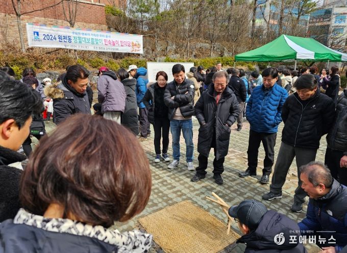 [ 포에버뉴스 김경순 기자 ] 지난 24일, 수원시 원천동 행정복지센터 주차장에서 단체장협의회 주관으로 ‘원천동 정월대보름 맞이 민속놀이 한마당’행사가 풍성하게 열렸다. 이날 단체원 등 주민 100여명이 행사를 즐기기 위해 한자리에 모였다.