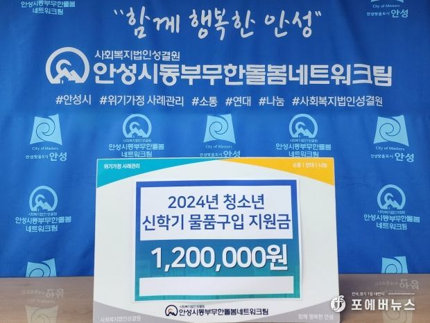[ 포에버뉴스 최진성 기자 ] 안성시동부무한돌봄네트워크팀은 지난 2월 말 지역 내 중ㆍ고등학교에 입학하는 동부권역 취약계층 청소년 6가정에 각 20만원씩 총 120만원의 신학기 물품구입 지원금을 전달했다.