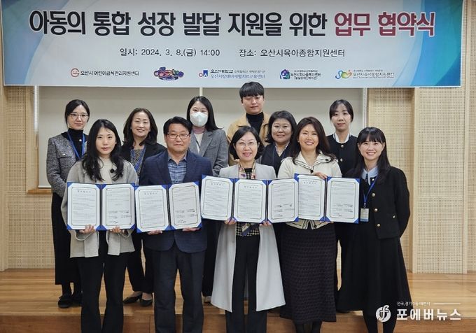 [ 포에버뉴스 최진성 기자 ] 오산시 육아종합지원센터는 8일 아동의 격차 없는 통합 성장 발달 지원을 위한 로컬 거버넌스 구축의 일환으로 관내 유관기관 4개소와 업무협약을 체결했다.