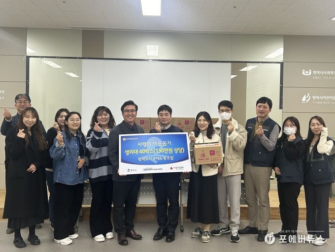 [ 포에버뉴스 최진성 기자 ] 평택도시공사노동조합은 지난 6일 생리대 40박스(150만 원 상당)를 평택행복나눔본부에 전달했다.