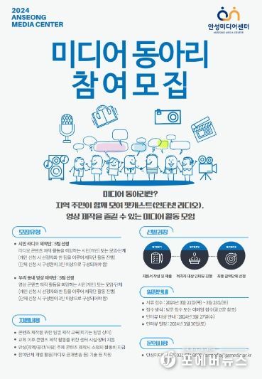 미디어센터 관계자는 “미디어 동아리 사업은 미디어에 대해 관심 있는 시민들이라면 누구나 쉽게 참여할 수 있고, 교육과 활동을 위한 다양한 제반시설 지원이 맞춤형으로 진행되어 부담 없이 즐길 수 있다.”며 “다양한 활동가 및 단체 발굴을 통해 안성지역의 미디어 향유 활성화에 이바지하도록 하겠다.”고 밝혔다.