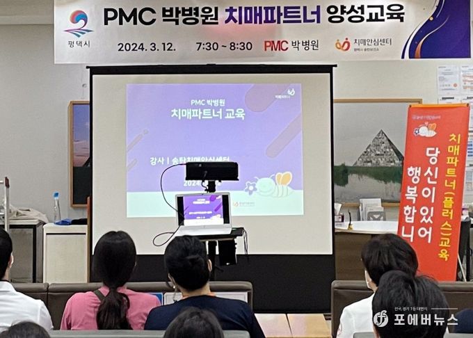 [ 포에버뉴스 최진성 기자 ] 평택시 송탄보건소 치매안심센터는 지난 12일 PMC박병원 직원 200여 명을 대상으로 치매 파트너 양성 교육을 시행했다.