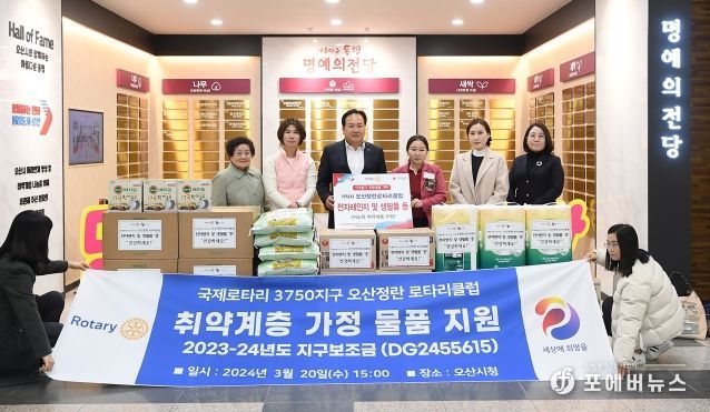 해당 기탁물품은 로타리재단에서 각 지구에 지급되는 지구보조금 사업비를 통해 마련된 것으로 동 행정복지센터와 오산종합사회복지관을 통해 관내 지원이 필요한 저소득 취약계층 7가구에 전달할 예정이다.