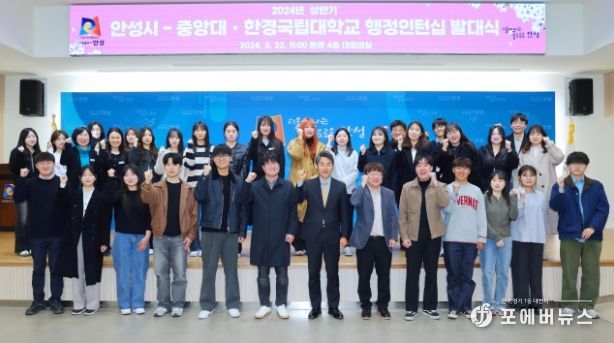 [ 포에버뉴스 최진성 기자 ] 안성시는 3월 22일 안성시청 본관 4층 대회의실에서 중앙대 학생 14명과 한경대학교 학생 11명, 안성시 공무원 7명이 참가한 가운데 2024년 상반기 대학생 행정인턴십 발대식을 개최했다.