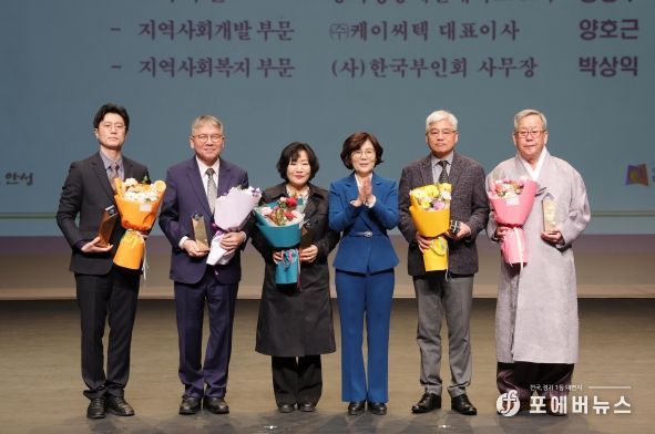 수상자는 ▲이택기 한경국립대학교 교수(학술) ▲임상철 안성사연구회 회장(예술) ▲공응구 동아방송예술대학교 교수(교육) ▲양호근 ㈜케이씨텍 대표이사 (지역사회개발) ▲소재환 봅슬레이 국가대표(체육) ▲박상익 (사)한국부인회 안성시지회 사무장(지역사회복지)이다.