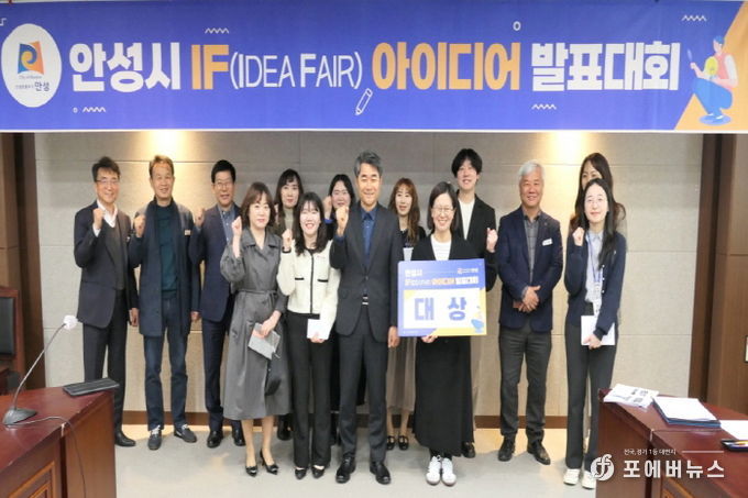 아이디어 발표대회의 대상은 환경오염을 줄이고 자원을 절약하기 위해 종이를 사용하고 있는 안성시청 종합게시판을 전자게시판으로 교체하는 방안을 제시한 ‘게시판의 봄’ 아이디어(회계과 오민정 주무관)가 차지했으며, 최우수상에는 생활에 밀접한 지원을 통해 출산 친화적인 분위기를 조성하여 출산율 제고를 위한 ’다자녀 가정 종량제 봉투 지원‘(보개면 이혜원)이 선정됐다. 우수에는 ’안성시 출산 가구 주거 안정을 위한 대출이자 지원‘(안성3동 김기민 주무관)과 ’안성시 팩토리 투어‘(전략기획담당관 장미 주무관)가 선정됐으며, 이외에도 시정 발전을 위한 다수의 아이디어가 발표됐다.