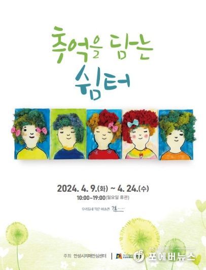[ 포에버뉴스 최진성 기자 ] 안성시 치매안심센터는 오는 9일부터 안성천에 위치한 우리동네 작은 미술관, ‘결 갤러리’에서 경증 치매어르신들이 치매 쉼터를 이용하며 만든 작품을 모아 ‘추억을 담는 쉼터’라는 주제로 전시회를 연다고 밝혔다.