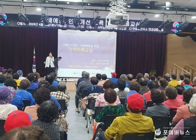 [ 포에버뉴스 최진성 기자 ] 평택시 안중보건지소는 지난 16일과 19일 이틀에 걸쳐 서부노인대학 어르신 500명을 대상으로 ‘치매예방·인식개선 교육’ 기억이음교실을 운영했다.