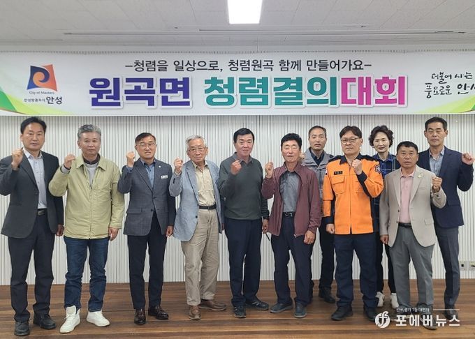 [ 포에버뉴스 최진성 기자 ] 안성시 원곡면 기관·사회단체장 협의회는 지난 23일 청렴의식 고양 및 청렴 일상화 실천으로 지역사회의 청렴한 분위기를 조성하고 청렴문화를 확산시키고자 청렴 결의대회를 개최했다.