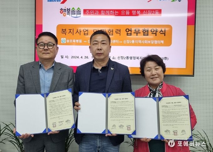[ 포에버뉴스 최진성 기자 ] 오산시 신장2동과 신장2동 지역사회보장협의체는 지난 26일에 송호욱병원과 신장2동 복지사업 상생 협력을 위한 업무협약을 체결했다고 전했다.