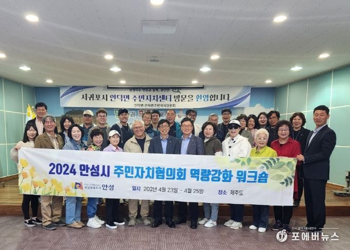 [ 포에버뉴스 최진성 기자 ] 안성시 주민자치협의회는 지난 23일부터 25일까지 제주특별자치도 일원에서 읍·면·동 주민자치위원(회)장과 시 관계자 등이 참석한 가운데 '2024년 주민자치협의회 역량강화 워크숍'을 가졌다.