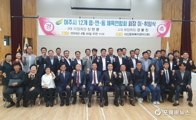 [ 포에버뉴스 김경순 기자 ] 지난 4월 26일, 여주시 읍․면․동 체육연합회 회장 이·취임식이 대신면 문화복지센터에서 개최됐다. 여주시 읍․면․동 체육연합회는 여주시 12개 읍․면․동 체육회가 연합한 단체로, 각 읍․면․동의 체육․건강 증진 활동을 펼침과 함께 여주시민의 체육활동 활성화에 기여하고 있다.