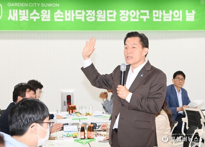 [ 포에버뉴스 김경순 기자 ] 이재준 수원시장이 새빛수원 손바닥정원단을 만나 “손바닥정원이 공동체 정신이 피어나는 공간이 되길 바란다”고 말했다.