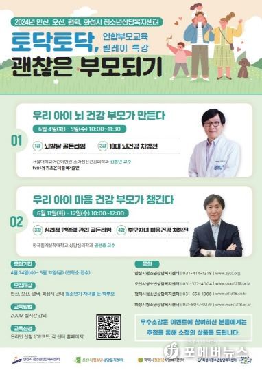 평택시청소년상담복지센터 오석연 센터장은 “토닥토닥, 괜찮은 부모되기” 교육을 통해 “10대의 발달학적 특성에 맞는 뇌 건강, 마음 건강의 중요성을 이해하고, 청소년 자녀와의 건강한 상호작용을 돕는 방법을 배울 수 있는 시간이 될 수 있기를 바란다”고 전했다.