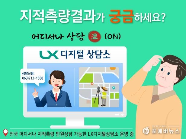 [ 포에버뉴스 최진성 기자 ] LX한국국토정보공사는 민원취약계층에게 지적서비스의 편의를 제공하기 위해 ‘LX디지털 상담소’를 운영한다 29일 밝혔다.