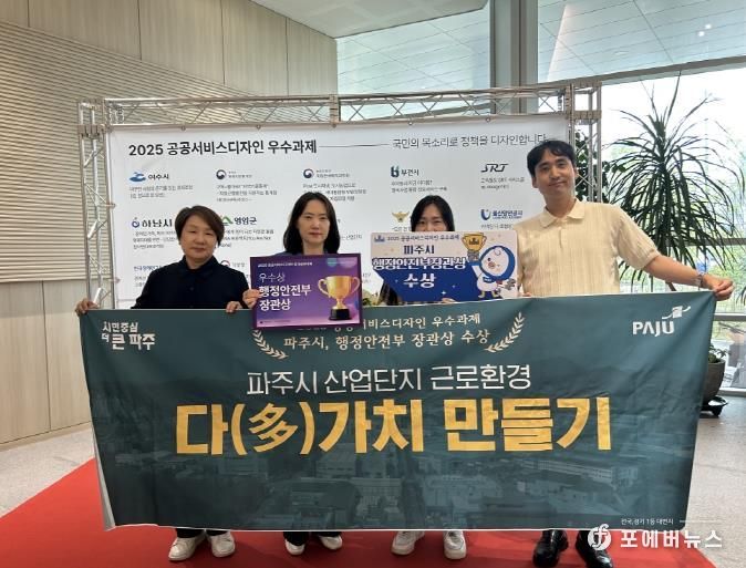 [ 포에버뉴스 김경순 기자 ] 파주시는 행정안전부가 주관하고 한국디자인진흥원이 주최한 ‘2025 공공서비스디자인 성과공유대회’에서 3년 연속 우수과제로 선정되어 행정안전부 장관상을 수상했다고 밝혔다.