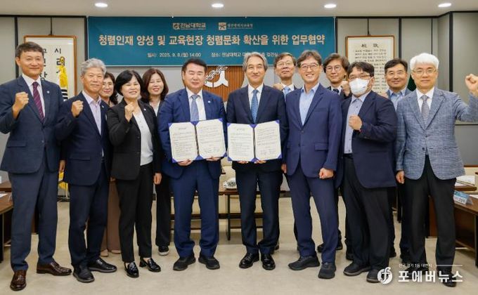 전남대 이근배 총장은 “대학이 가진 전문성과 교육청의 현장 경험이 만나 시너지 효과를 낼 것으로 기대한다”며 “지역사회 전반에 청렴 의식이 확산될 수 있도록 적극 협력하겠다”고 밝혔다.