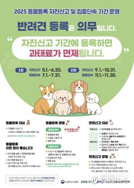 박동순 축산반려동물과장은 “반려견 등록은 의무이며, 자진신고 기간에 등록하면 과태료가 면제되니 아직 등록하지 않은 반려인은 반드시 이번 기회에 등록해 주시기 바란다”고 말했다.