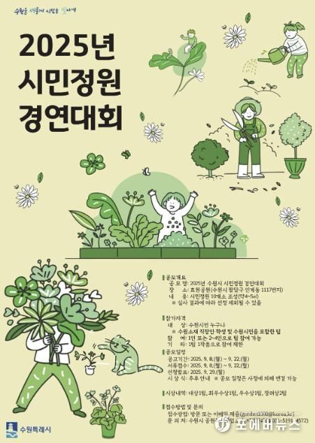 [ 포에버뉴스 김경순 기자 ] 수원시는 9월 22일까지 ‘2025년 시민정원 경연대회’에 참가할 시민을 모집한다.