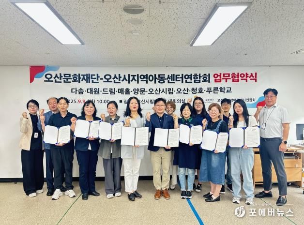 [ 포에버뉴스 김경순 기자 ] 오산문화재단은 9일 오산시지역아동센터연합회와 오산 청소년들이 건강한 사회 구성원으로 성장할 수 있도록 상호협력을 하기 위한 업무협약을 체결했다고 밝혔다.