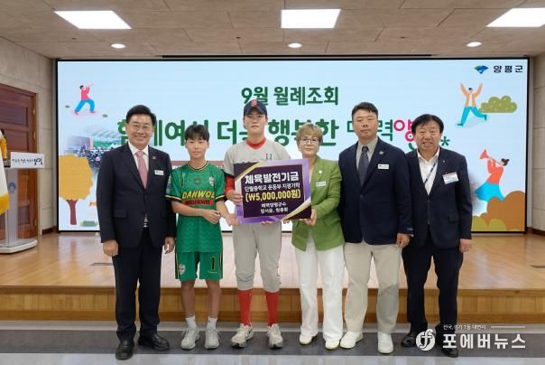 [ 포에버뉴스 박정배 기자 ] 양평군은 지난 3일 군청 대회의실에서 열린 월례조회에서 장서윤, 원종환 매력양평 군수가 단월중학교 운동부를 위해 500만 원을 지정 기탁했다고 밝혔다.