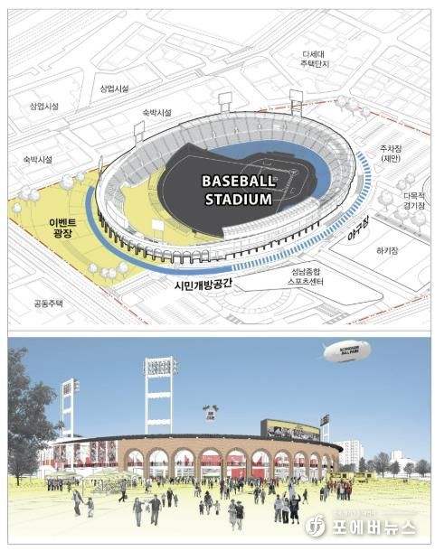 [ 포에버뉴스 김경순 기자 ] 2028년 프로야구 시대를 열 성남시 야구 전용구장의 밑그림이 나왔다. 성남시는 프로야구 개최가 가능한 야구 전용구장 조성을 위해 진행한 성남종합운동장 주경기장 리모델링 설계 공모에서 ㈜에스샵건축사사무소의 설계안을 당선작으로 선정했다고 11일 밝혔다.