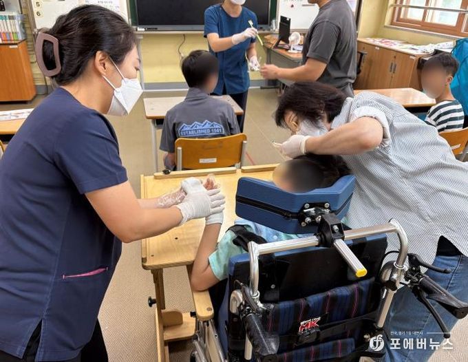 [ 포에버뉴스 김경순 기자 ] 부천시는 9월 8일부터 10일까지 부천상록학교와 부천혜림학교를 방문해 특수아동 350여 명을 대상으로 구강검진과 불소도포, 치아 모형을 활용한 체험형 구강 교육을 진행했다.