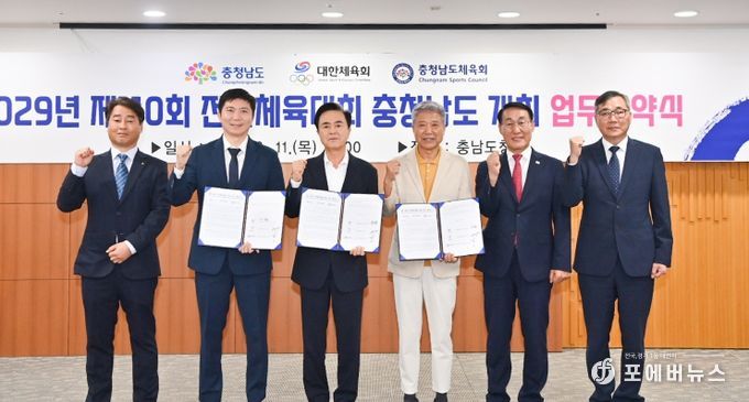 도는 11일 도청 상황실에서 대한체육회, 도체육회와 함께 ‘2029년 제110회 전국체육대회 개최 업무 협약식’을 열고, 전국체육대회 성공 개최를 위해 손을 맞잡았다.