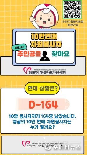 이번 이벤트는 미추홀구 소속 1365 자원봉사포털 신규 회원 가입자를 대상으로 하며, 누적 봉사자 수가 10만 명에 도달하는 순간 선정된 봉사자를 기념하고 축하하기 위해 마련됐다.