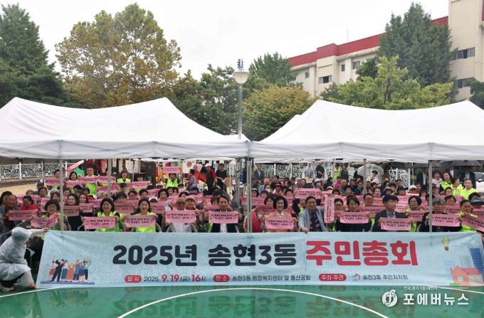 [ 포에버뉴스 김경순 기자 ] 인천 동구 송현3동 주민자치회(회장 신흥균)는 지난 19일 돌산공원에서 2025년 주민총회를 개최하고, ‘2026년도 자치계획’을 확정했다고 밝혔다.