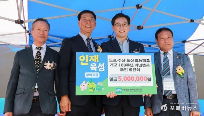 [ 포에버뉴스 오명숙 기자 ] 영암 도포·수산·도신초등학교 100주년 기념행사 추진위원회가 20일 (재)영암군미래교육재단에 인재육성기금 500만원을 전달했다.