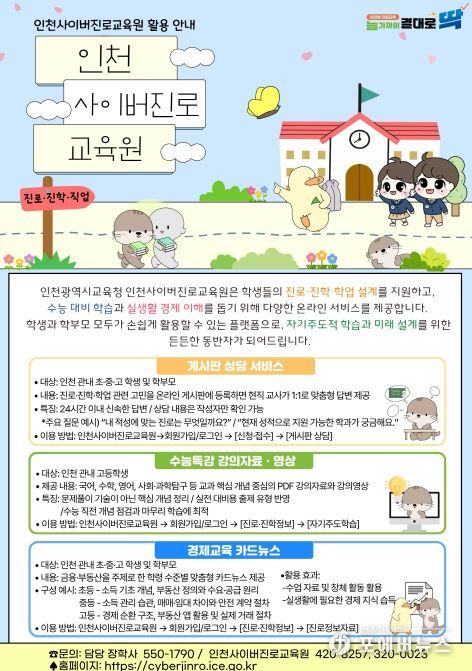 [ 포에버뉴스 김경순 기자 ] 인천광역시교육청은 학생들의 미래 설계를 지원하기 위해 인천사이버진로교육원에 신규 맞춤형 콘텐츠를 추가 탑재했다.
