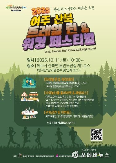 오는 10월 11일, 여주시 산북면 양자산 임도와 품실채 농촌체험휴양마을 일대에서 ‘여주산북 트레일 런&워킹 페스티벌’을 개최한다.