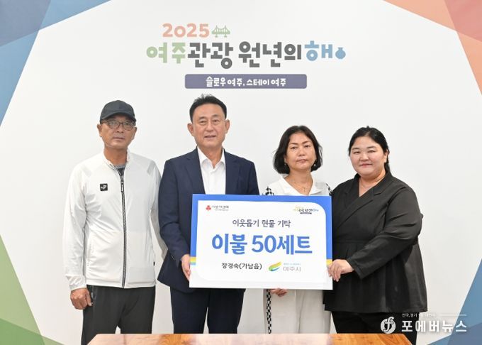 [ 포에버뉴스 박정배 기자 ] 지난 19일 장경숙(가남읍 주민)님은 여주시청을 방문하여 여주시 저소득층을 돕기 위한 후원품으로 이불 50세트(175만원 상당)를 기탁했다.