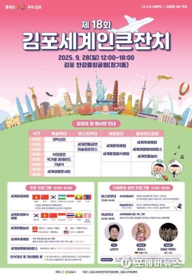[ 포에버뉴스 김경순 기자 ] 상호문화도시 김포시가 오는 9월 28일 제18회 세계인 큰잔치를 연다. 김포시가 주최하고 김포시외국인주민지원센터와 김포시가족센터가 공동 주관으로 추진되는 이번 행사는 오후 12시부터 6시까지 김포한강중앙공원에서 열린다.