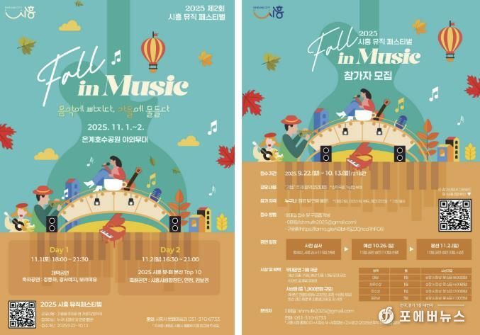 [ 포에버뉴스 김경순 기자 ] 시흥시는 오는 11월 1일부터 2일까지 시흥 은계호수공원에서 ‘2025년 제2회 시흥뮤직페스티벌’ 개최를 앞두고 참가팀을 모집한다. 올해 페스티벌 주제는 ‘시흥 Fall in Music -음악에 빠지다, 가을에 물들다- ’로 ‘가을’을 주제로 한 다양한 장르의 전국 단위 음악경연대회 및 축하공연으로 꾸며진다.