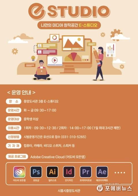 [ 포에버뉴스 김경순 기자 ] 시흥시중앙도서관은 시민들의 미디어 창작활동을 적극 지원하기 위해 도서관 3층에 위치한 e-스튜디오에 어도비 크리에이티브 클라우드(Adobe Creative Cloud)를 도입해 오는 9월 25일부터 시범 운영을 시작한다.
