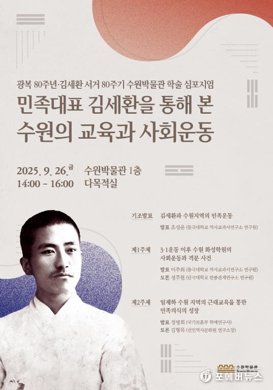 이어 “수원박물관에서 진행 중인 특별기획전 ‘다시 만난 민족 대표 김세환’과 이번 학술심포지엄이 광복 80주년 ‘당당한 대한민국, 빛나는 수원’을 만드는데 힘이 되길 바란다”고 밝혔다.
