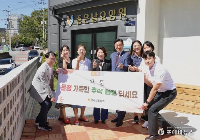 [ 포에버뉴스 오명숙 기자 ] 전라남도의회 강문성 기획행정위원장(더불어민주당, 여수3)은 지난 9월 23일 추석 명절을 앞두고 여수시에 소재한 좋은날요양원과 여수농아원 시설을 방문해 위문품을 전달하고 시설관계자에게 감사와 격려의 마음을 전했다.