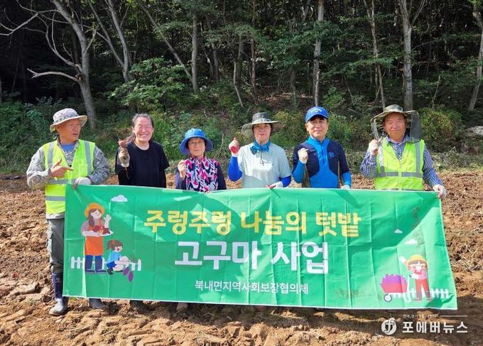 [ 포에버뉴스 박정배 기자 ] 북내면지역사회보장협의체가 지난 23일, 올봄 정성껏 심었던 '나눔의 텃밭'에서 풍성한 고구마를 수확했다. 이번 수확 행사에는 협의체 위원들과 북내면행정복지센터 직원 등 10여 명이 참여해, 구슬땀을 흘리며 탐스럽게 영근 고구마를 캐내는 기쁨을 함께했다.