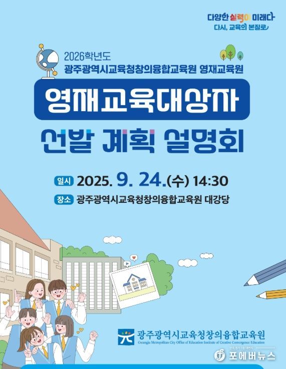 [ 포에버뉴스 오명숙 기자 ] 광주광역시교육청창의융합교육원이 2026학년도 초·중학교 영재교육 대상자 976명을 선발한다.