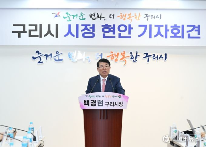 [ 포에버뉴스 김경순 기자 ] 백경현 구리시장은 지난 24일 시청 3층 상황실에서 기자회견을 열고, 시민들에게 추석 인사와 함께 시 승격 40년 기념 시민의 날 행사 및 구리 코스모스 축제를 소개하고, 최근 일부 언론보도에 대한 시의 공식 입장을 밝혔다.