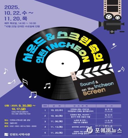 [ 포에버뉴스 김경순 기자 ] 인천광역시 인천도시역사관은 오는 10월 22일부터 일반 시민을 대상으로 ‘도시학당-사운드&스크린 속의 인천’을 운영한다고 밝혔다.