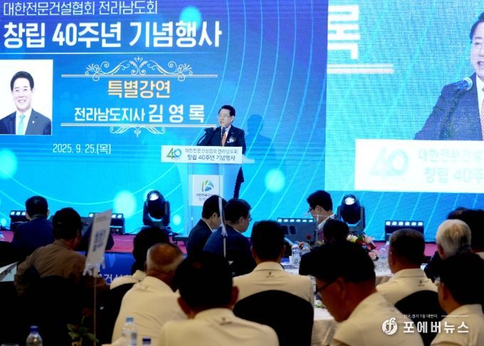 [ 포에버뉴스 오명숙 기자 ] 전라남도는 25일 보성군 보성다비치콘도에서 열린 전문건설협회 전남도회 40주년 기념행사에서 대한민국 성장의 새로운 중심축이 되기 위한 비전을제시했다.