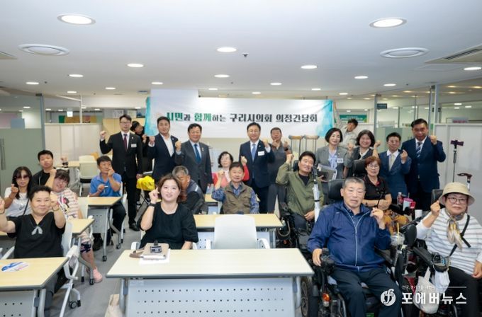 [ 포에버뉴스 김경순 기자 ] 구리시의회는 9월 25일 구리유통종합시장 2층 회의실에서 장애인미디어인권협회 구리시지회(지회장 권미경)와 간담회를 가졌다. 이날 간담회에는 신동화 의장을 비롯한 구리시의회 의원들과 장애인미디어인권협회 회원들을 포함하여 20여 명이 참석했다.